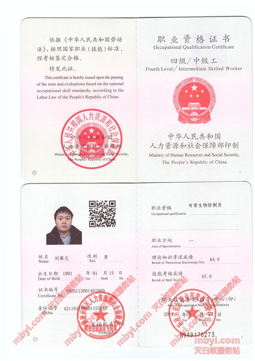 刘高元执业证书_刘师傅是白蚁虫害防治中级工程师