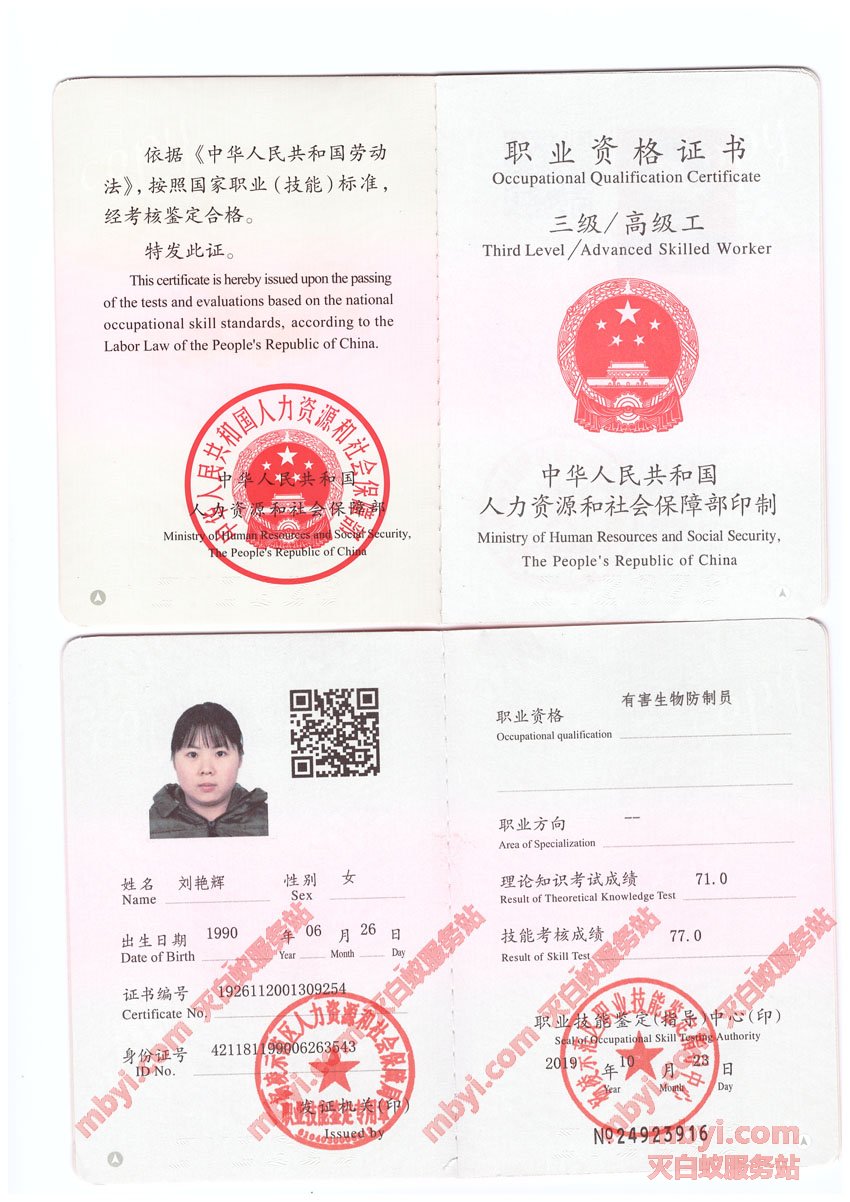 刘艳辉执业证书_刘师傅是白蚁虫害防治高级工程师